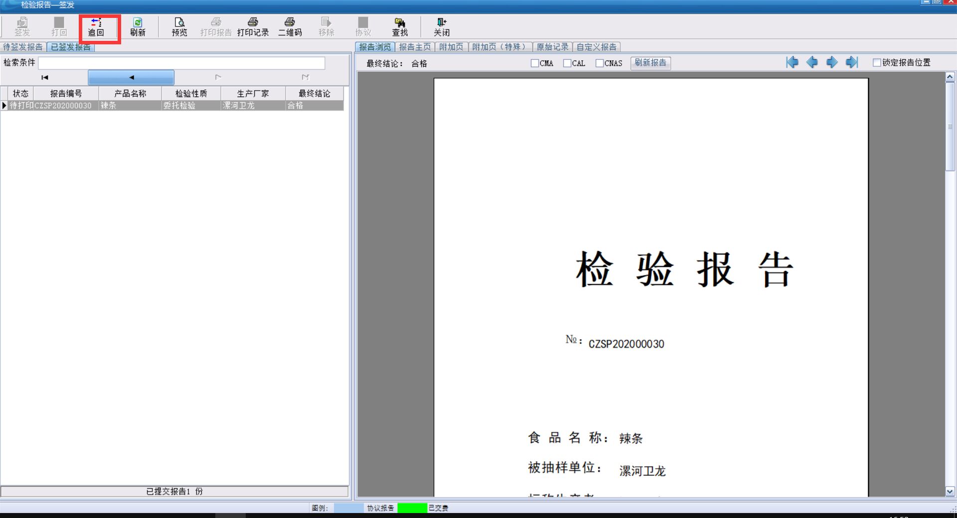 如果報(bào)告已經(jīng)到了報(bào)告打印,我們發(fā)現(xiàn)該份報(bào)告有錯(cuò)誤,我們需要登錄簽發(fā)人(該份報(bào)告)的賬號(hào),打開報(bào)告簽發(fā),我們可以在任務(wù)欄中找到已簽發(fā)報(bào)告,選擇要追回的證書,點(diǎn)擊上方追回,然后在進(jìn)行打回。
