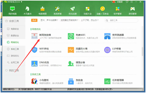 解決方法:使用360安全衛(wèi)士里邊的實(shí)用工具,找到斷網(wǎng)工具箱,進(jìn)行檢測,并修復(fù)即可。