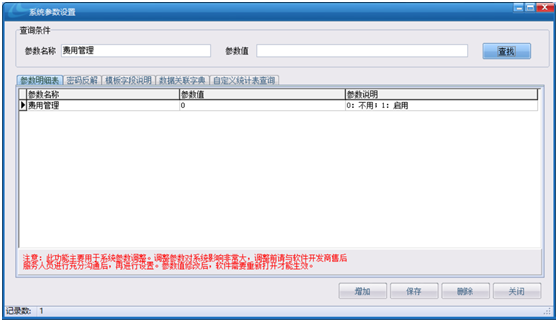 解決辦法:在【系統設置中心】中的【系統設置參數設置】中的【費用管理】的參數值設置為【0】,0為不用;1為啟用