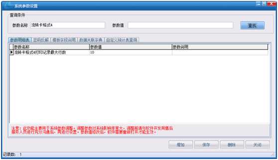 解決辦法:在【系統設置中心】中的【系統設置參數設置】中的【流轉卡格式4打印記錄最大行數】的參數值可設置為10行或者20行