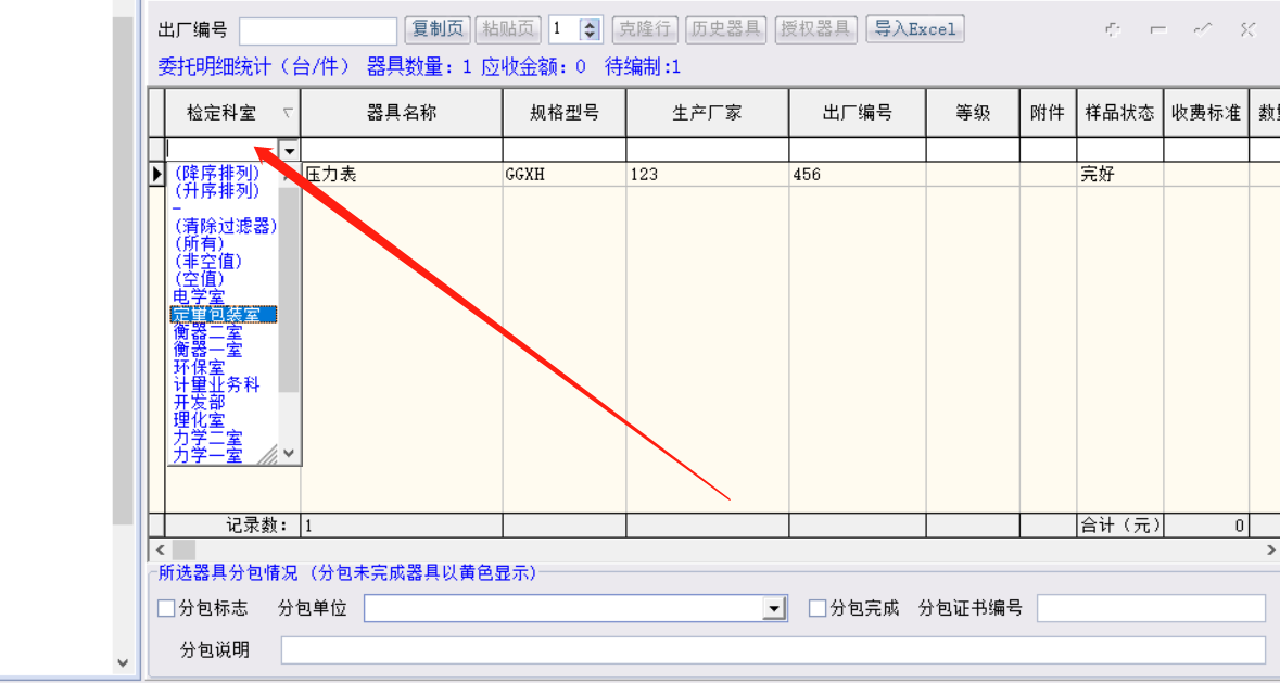 在【業務委托受理】器具信息的模塊有一個篩選行,要是器具信息較多我們要精準查找某一臺器具信息比較方便,